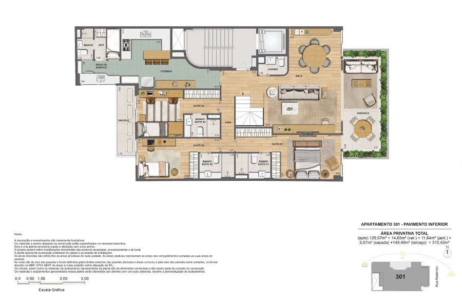 Cobertura com 3 Suítes com 310m².